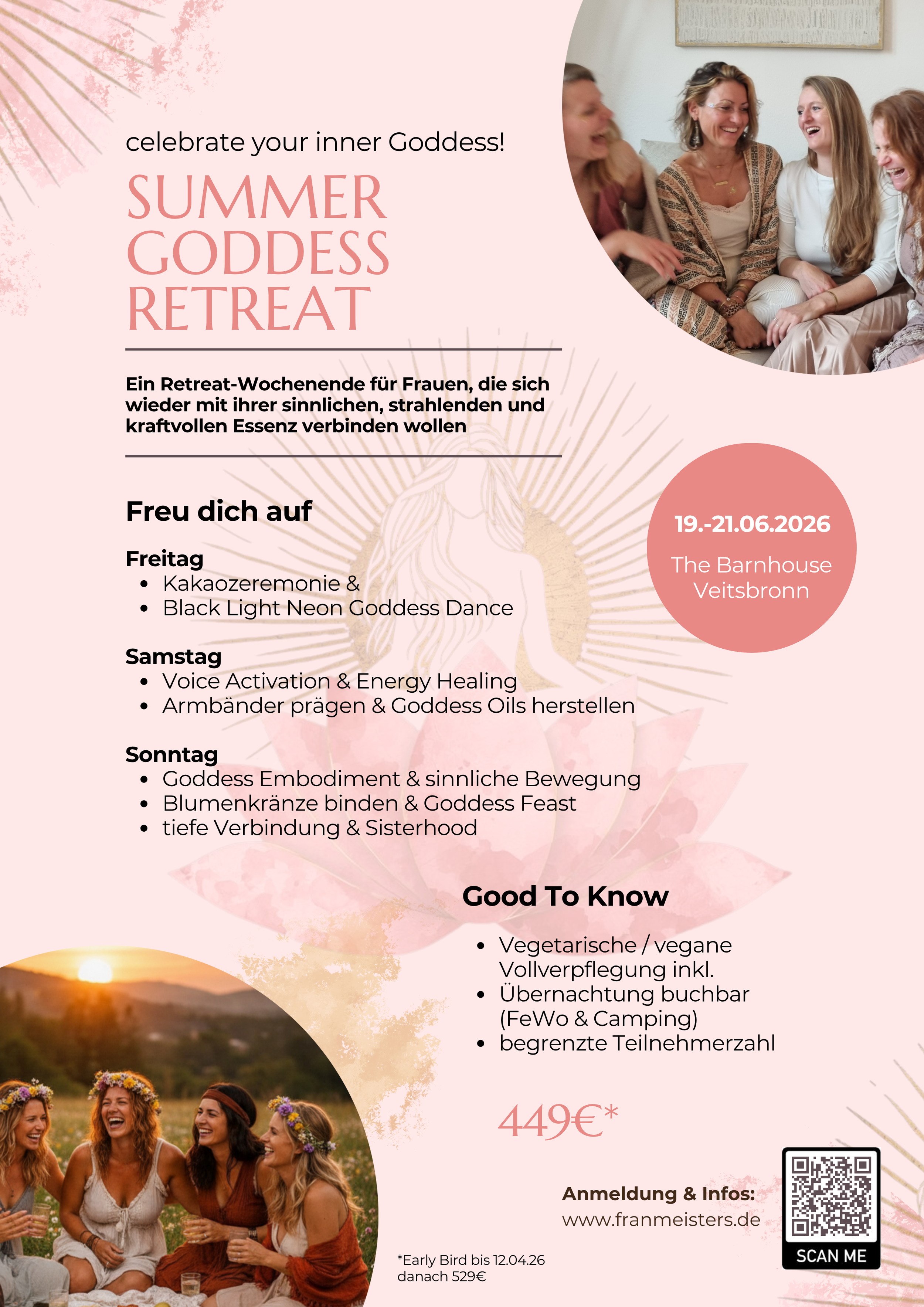 Ein Retreat-Wochenende für Frauen, die sich wieder mit ihrer sinnlichen, strahlenden kraftvollen Essenz verbinden wollen.